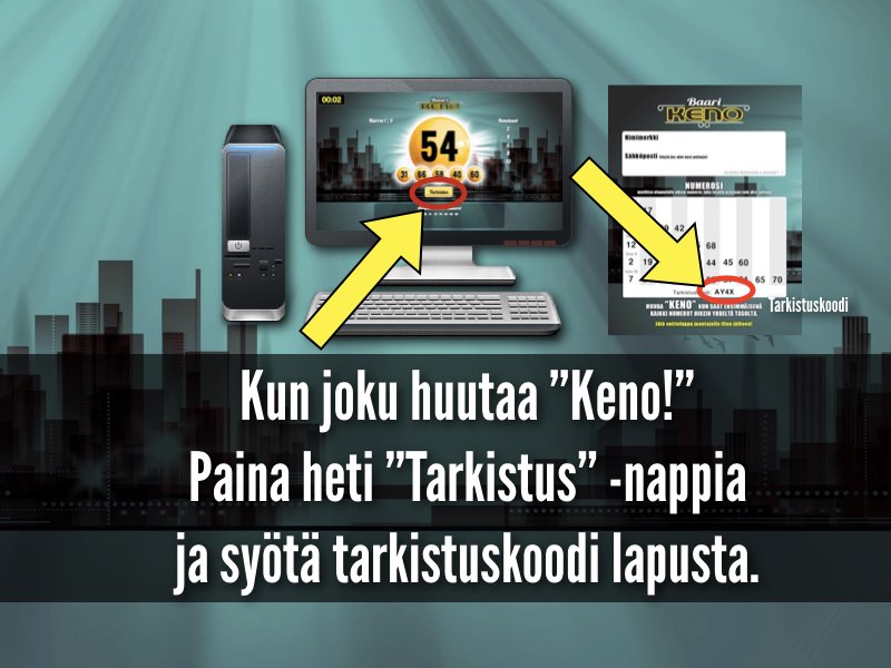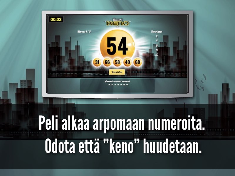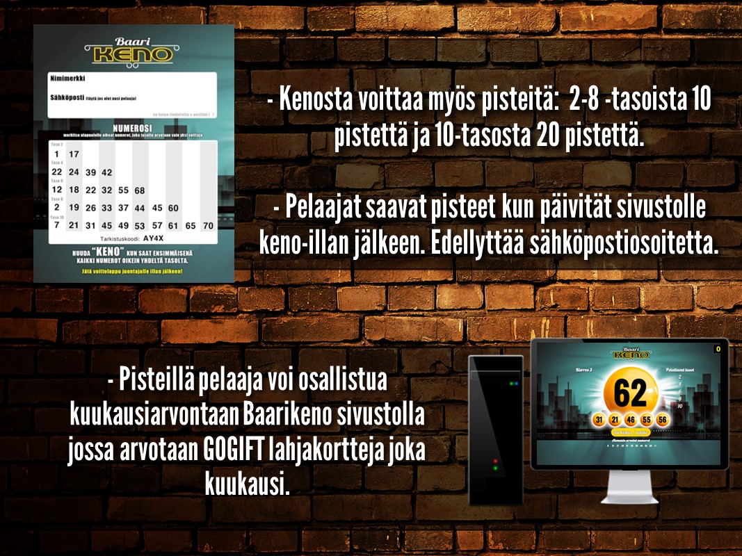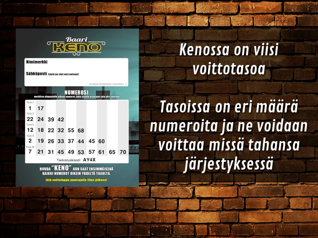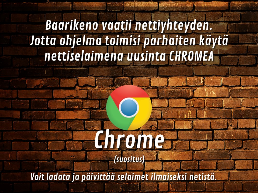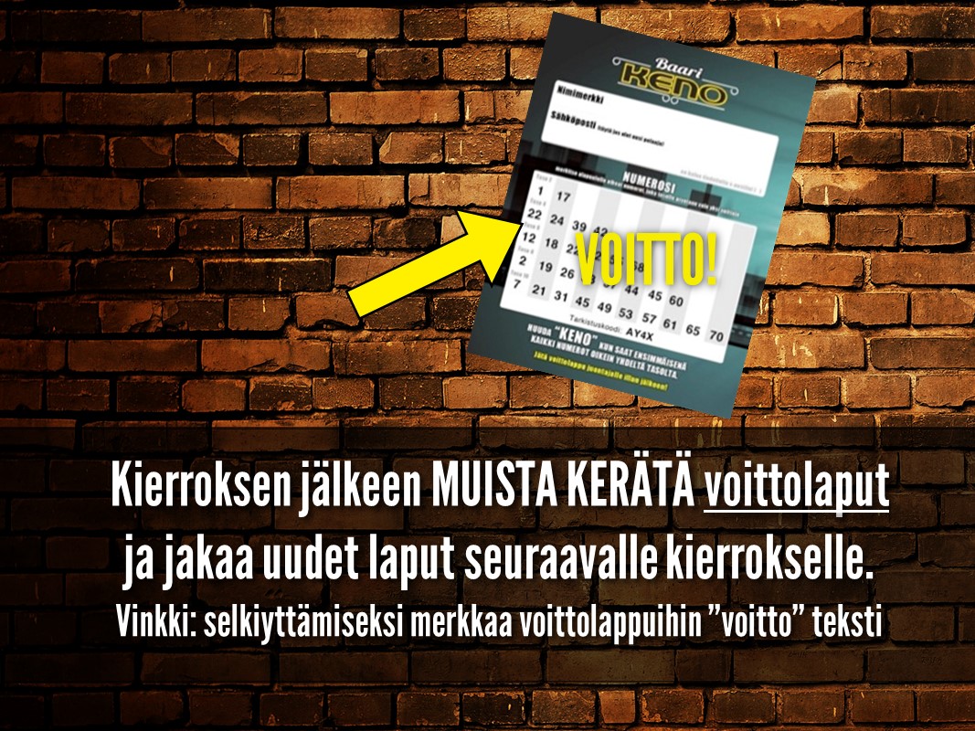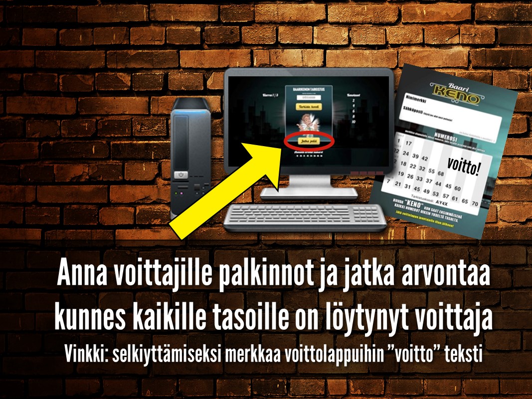 Katso Baarikenon asetukset ja muut kohdat videolta