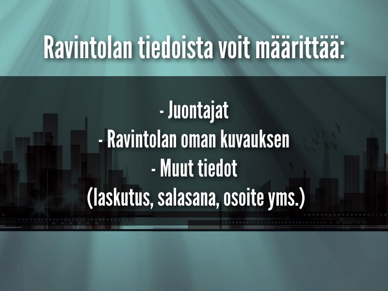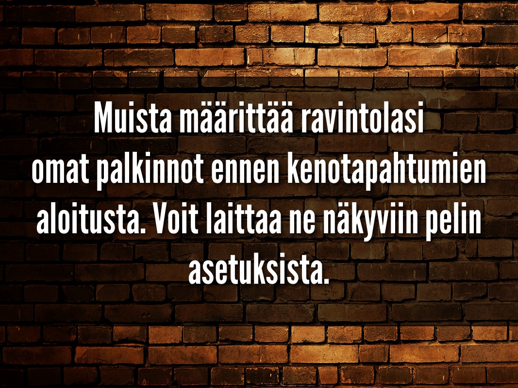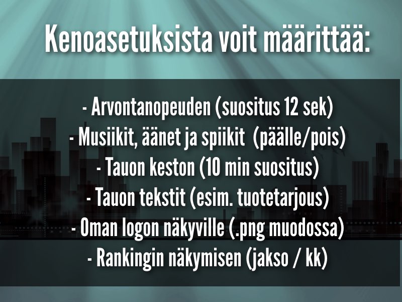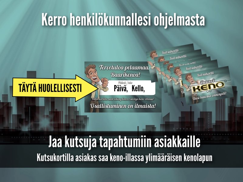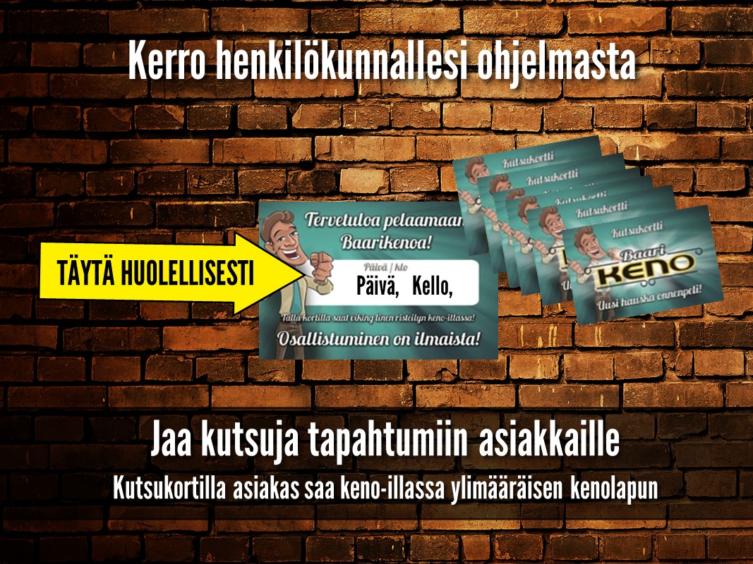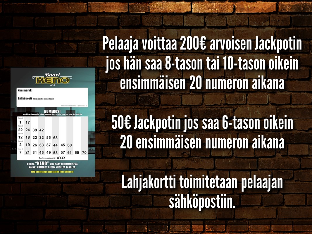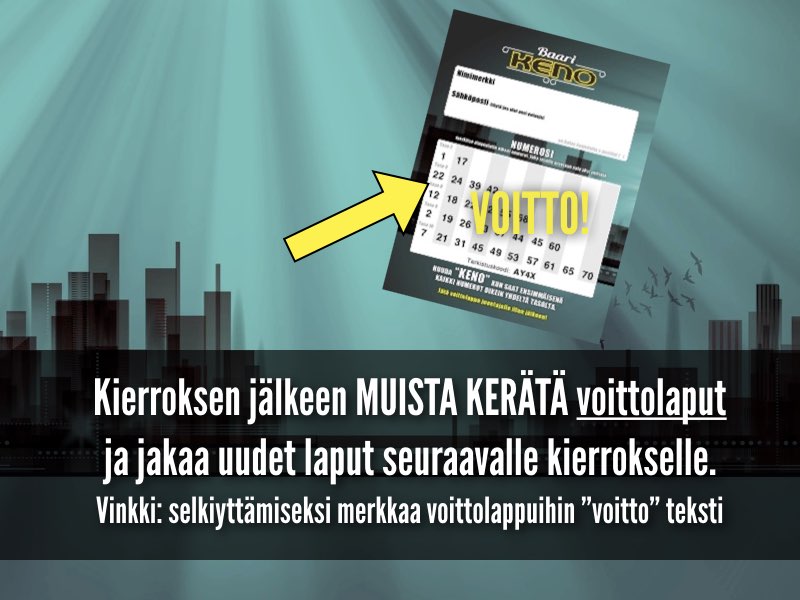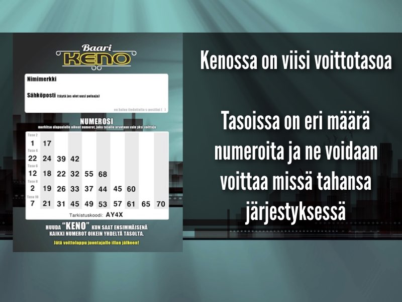 Katso Baarikenon asetukset ja muut kohdat videolta